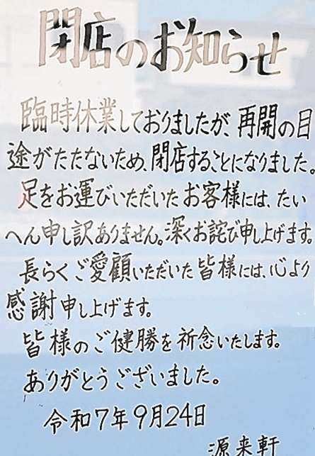■ 源来軒閉店、悲しい...