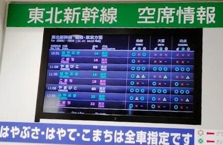 午前中は盛岡駅から仙台までは空席有り、仙台から大宮へは満席の列車もあり