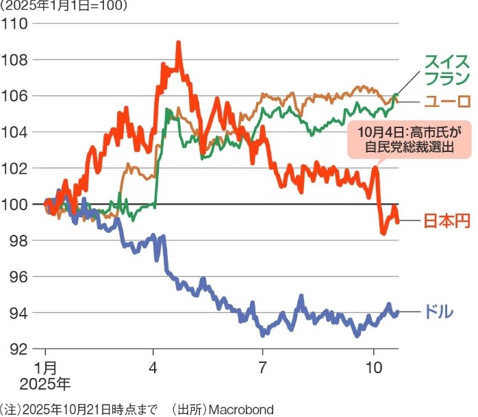 片山さつき財務大臣が「最近の円安は行き過ぎだ」と述べました。円安がインフレの原因で、過度の変化は容認できないという認識を示したのですが、投機の動きは止まりそうもありません。いよいよなら為替介入するかもしれません。米国のベッセント財務長官は早くから警鐘を鳴らしています。みずほ銀行のチーフマーケット・エコノミスト;唐鎌大輔氏の持論は「円安はあくまで日本固有の要因に根差した動き」ということです。円は過去3年間、全面安を強いられていたにもかかわらず、年初来の強烈なドル安相場には入れて貰えませんでした。2025年4月以降(すなわちトランプ関税が始まって以降)ドルの基軸通貨性に疑義が生じ、「ドル離れ」が為替市場で争点化し始めて、主要通貨では欧州通貨の騰勢が目立っています。米国から欧州への資金ローテーションが起きているのです。名目実効為替相場で見ても、年初来で明確に下落しているのはドルと人民元くらいですが、日米金利差が縮小しても円売りが止まらないのは、日本政局不安とこれに付随する拡張財政への不安が円金利上昇の背景にあるのだとすれば、ある程度納得出来るところだというのです。結局、「ドルは危ないが、円も危ない」という市場の思惑を読み取るほかない・・・と言います。特に高市政権になって円安に拍車がかかる傾向です。