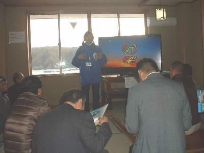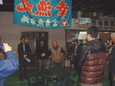 震災後の状況の説明を兼ねて、協同組合宮古魚菜市場副理事長の平井昭吉さんにご挨拶をいただきました