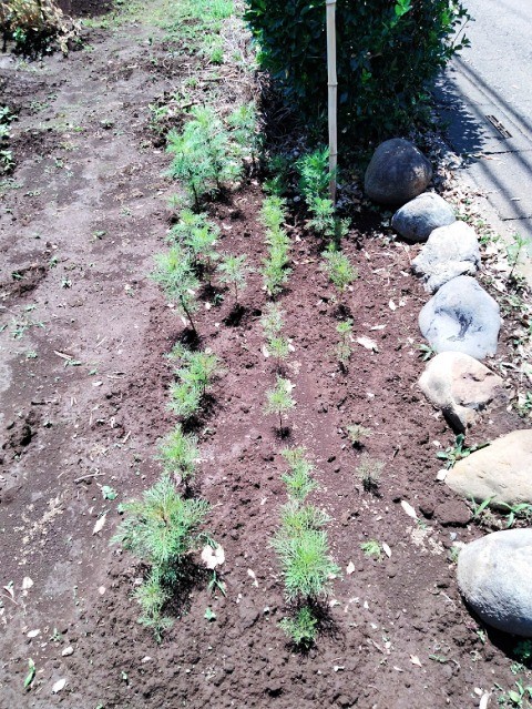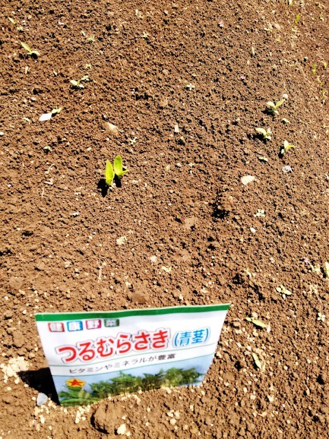 ツルムラサキの芽が出ました 赤茎と青茎の2種撒きました