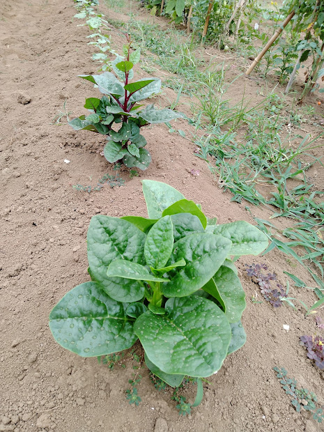 ツルムラサキは2種・・・赤茎と緑茎(手前)、どうですか、このみずみずしさ・・・