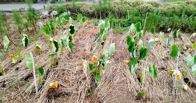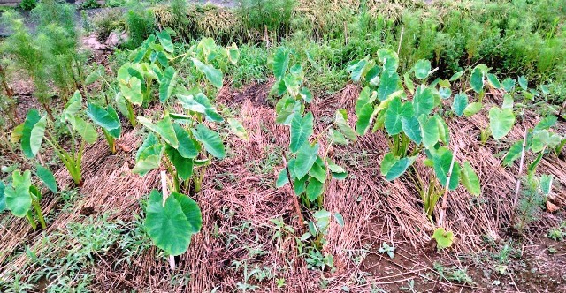 7月12日(火)里芋のまわりに麦藁を敷き詰めました![]()
