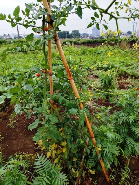 ミニトマトとコンパニオンプランツのマリーゴールド