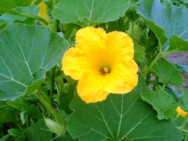 花が咲くのが早いのはアサガオで、早朝に花が開き、午前9〜12時ごろには花はしぼんでしまいます。カボチャは朝5〜10時ぐらいの間に花が開き、イネの花はもっと短くて、9〜11時の間だけ咲いています。セイヨウタンポポは、朝6時ごろから夕方まで咲いています。かぼちゃは、一株に雄花と雌花が混在して咲く雌雄異花の単性花です。雄花には雄しべが、雌花には雌しべと子房がついています。花の根元が膨らんでいるのが雌花です。咲く割合は品種によって異なりますが、つるや葉ばかり繁るいわゆる「つるボケ」になると雄花が多くなるようです。