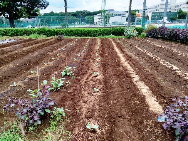 その隣3畝には「ブロッコリー」の苗を、間隔広く40本植えました