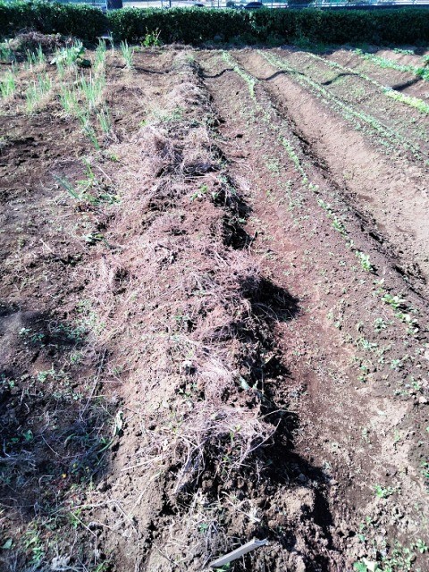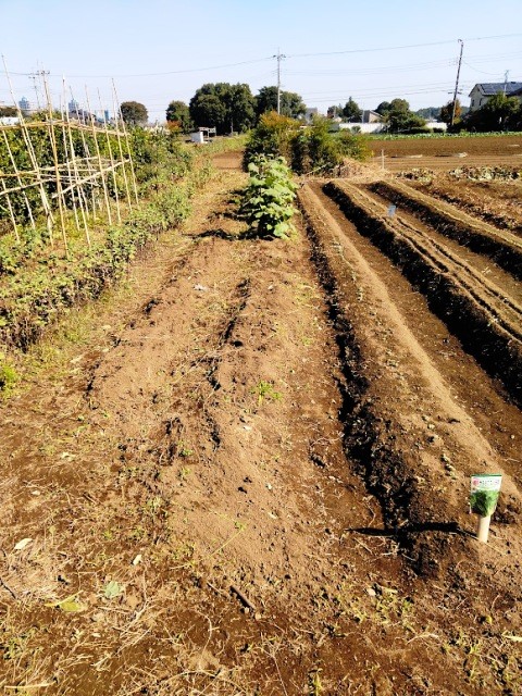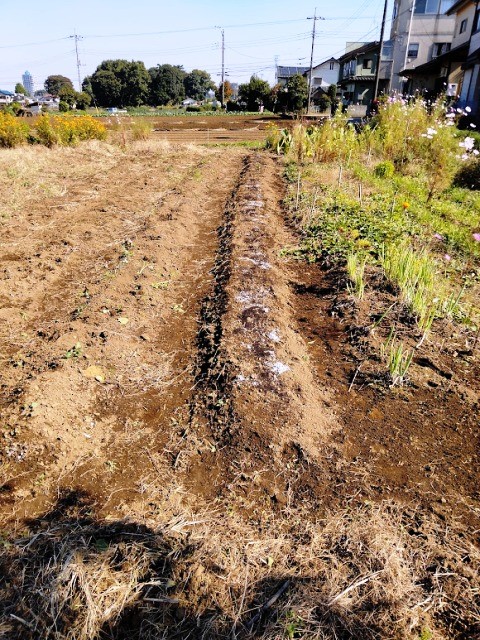 オクラの跡地に畝を造り、苦土石灰と堆肥を施肥していましたが...