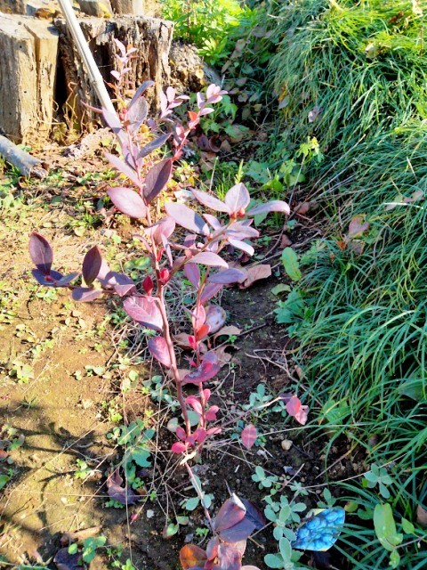畑の南西側…ふじみ野高校グラウンド側に植えてあるブルーベリーの紅葉