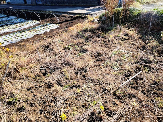 ニンニクを植えようかと言っていた2畝には冬でも育つ耐寒アブラ菜を種まき