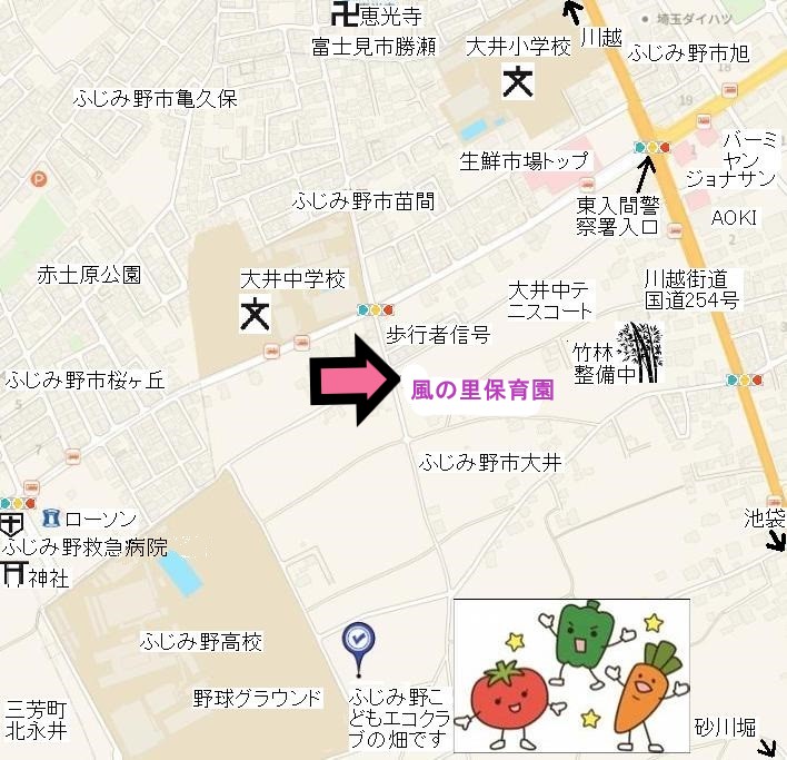 畑の近く・・・大井中学校近辺に「風の里保育園」があります
