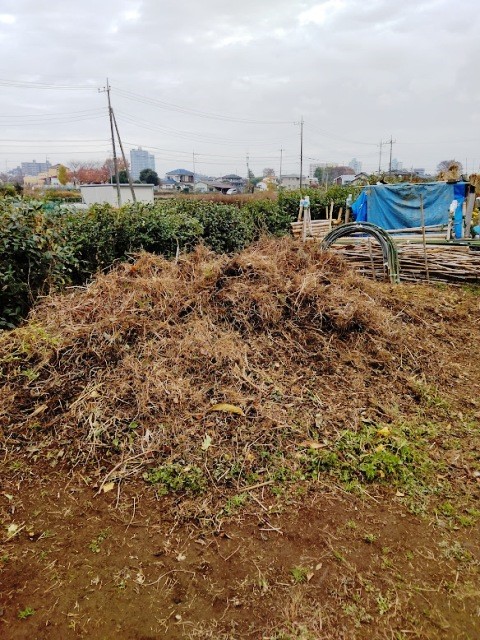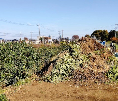 カナヘビかな?と思いましたが、それにしては体全体が茶色ではなく、尻尾の方は鮮やかなブルーです。生き物に詳しいS崎さんに聞いたら「東日本トカゲ」だそうです。幼体と成体で体の色が異なります。成体は褐色の体の側面に黒褐色の線が走り、繁殖期のオスは頬から腹にかけて赤みを帯びるそうです。幼体は黒褐色の地に5本の明るい褐色の縦縞が頭から尾まで走っていて、尻尾の方はメタリックな青色をしています。体全体が光沢を放っており、ヌルヌルしてそうですが、触るとそうでもないそうです。昔は何処にでもいたので、子どもがこれをつかまえて遊んでいましたが、危険を察知すると尻尾を切って逃げます。尻尾は切れた後もしばらく動いていて、敵の気を引きます。尻尾を切って逃げて行くのを見ると申し訳なく思ったものですね。腹は柔らかく、前足と後ろ足の間は膨らんで見えます。 西日本に生息するニホントカゲと姿はほとんど一緒ですが遺伝子は異なり別種です。昆虫やミミズを餌とするので、これがいるということは、この畑が無農薬で豊かな生態系を保っていることを意味しているのです。