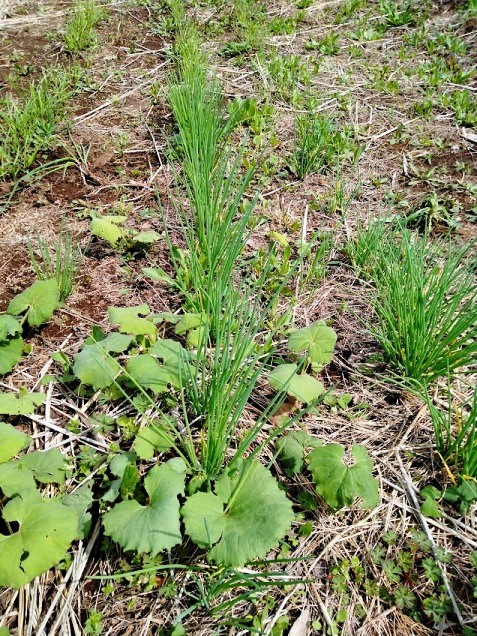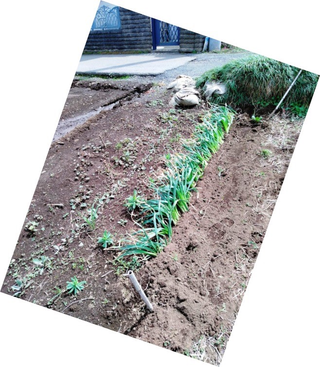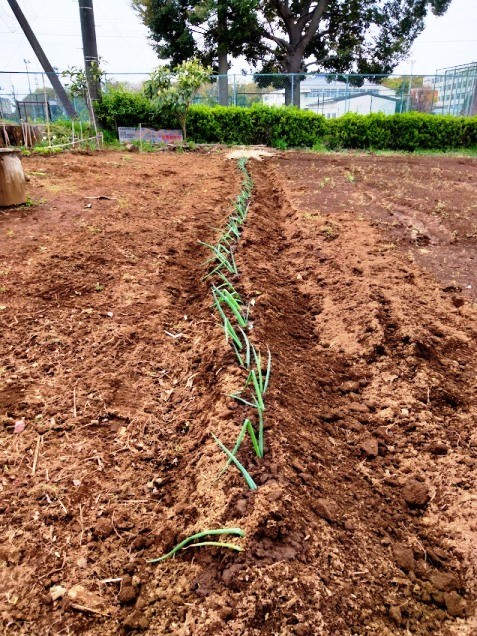 M野谷さんから頂いたネギ苗を植えました。奥の藁を被せているところにはアスパラ2株植えました