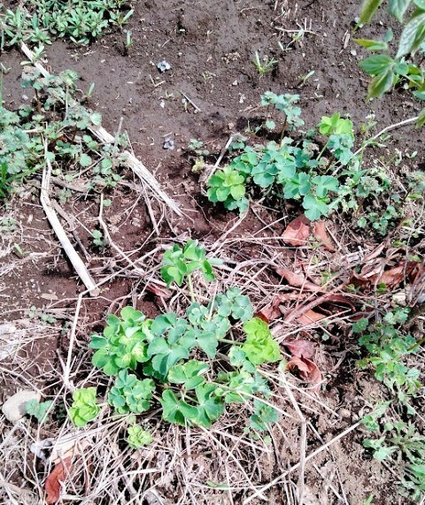 畑入口のアオイが大きくなってきて、隣のマーガレットの日照を遮りそうなので一部抜いて別の場所へ移植