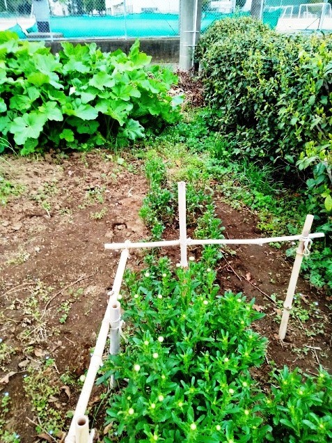 前回畑北東側に秋田から来た食用菊の苗を植えました