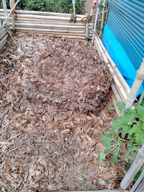 おおたかの森トラストの足立さんが持ってきてくれた「落ち葉ケーキ」、これで堆肥を作ります