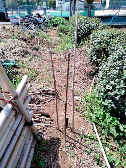 竹林から青竹持ってきて斜めに支柱を支える形にしました