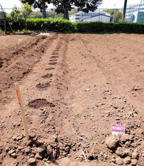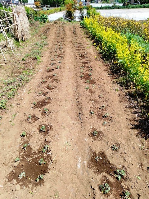 前回昨年からの芽出し苗を移植して、合計2畝にしました