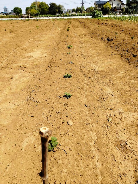 ジャガイモが順調に芽出し、合計6畝あります