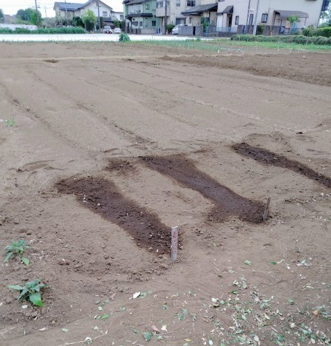 朝鮮カボチャ、冬瓜、ゴーヤの種を畑の片隅に播き、芽が出たら育苗して、移植します