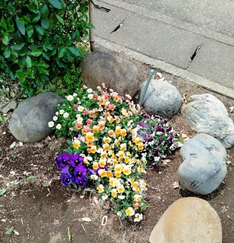 畑入口のパンジーやビオラ