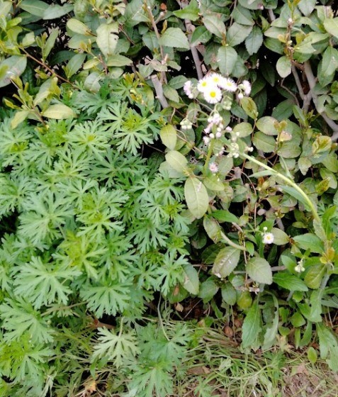 ヒメジョオンの花とアメリカフウロの矢車のような葉の競演