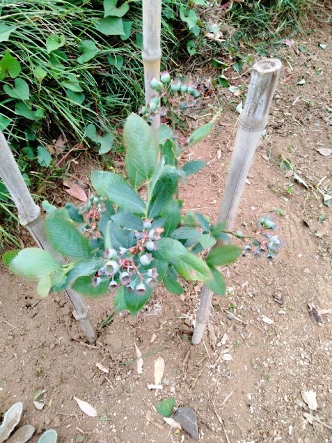 ブルーベリーの実が着いていますが、中々背丈が大きくなりませんね