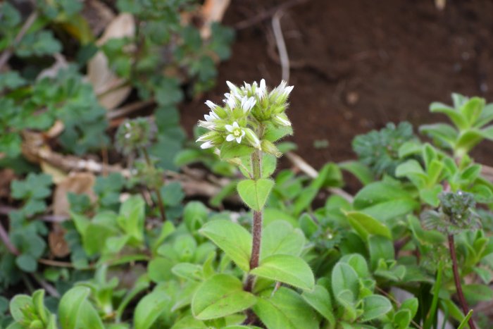 名の通りヨーロッパからの帰化植物、越年草で春に白色の5弁花を密に咲かせます