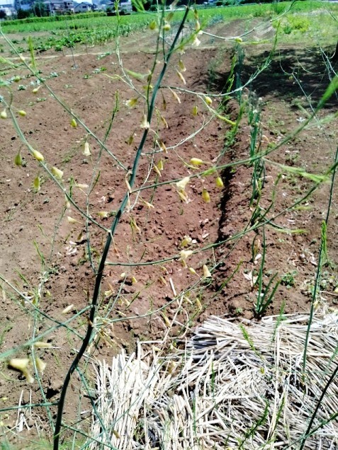 絹サヤが出来ていますが、上に伸びず地面を這っています