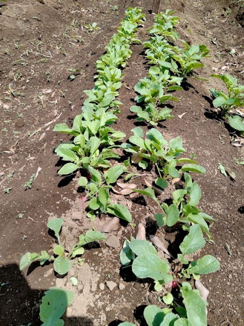 蕪や大根が成長しています