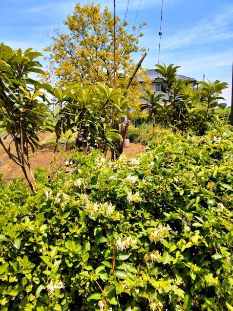 スイカズラ(金銀花)が咲き乱れています