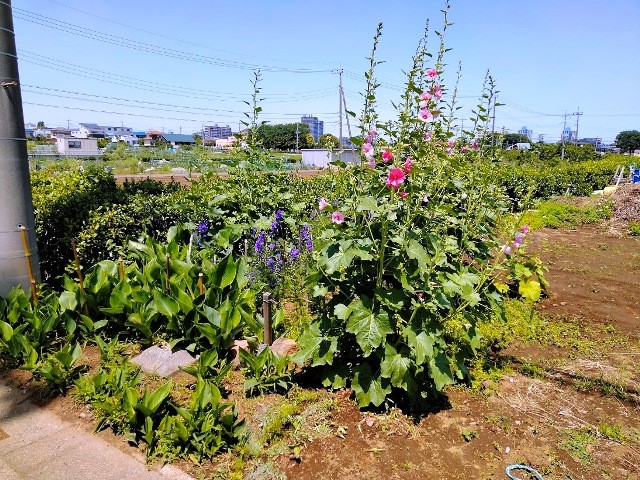 今年はアオイを減らし、ラークスパーを植えて、紫色の花がきれいに咲いています