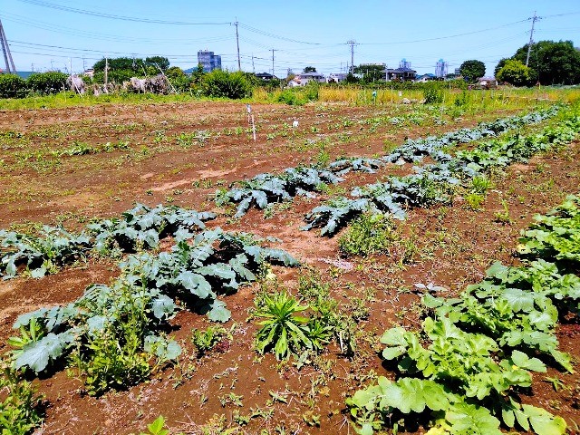 その向こうの移植スペースは草ボウボウ、「除草」せず「不耕起栽培」するためです