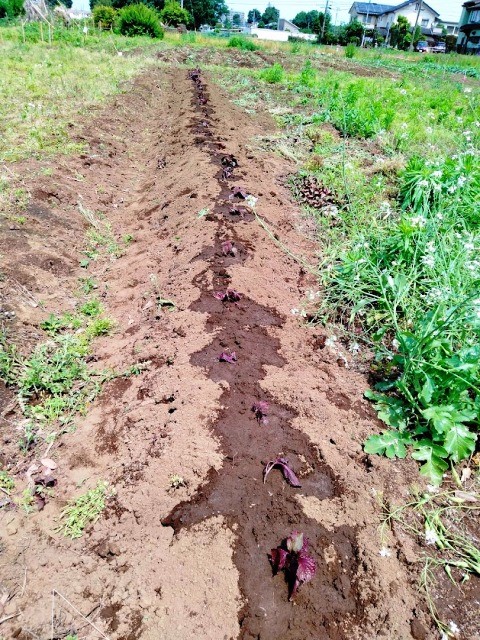 今年は遅くなりましたが、例年通り赤紫蘇の畝を造りました