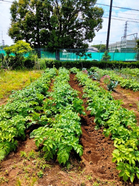 ジャガイモの土寄せを行いました
