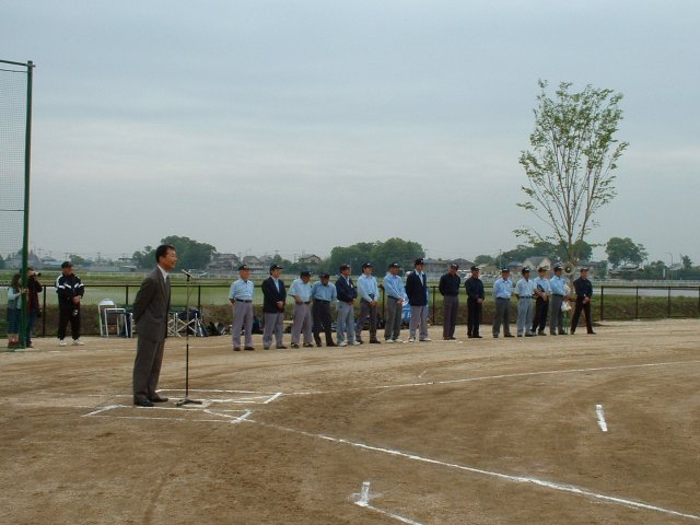 毎日新聞川島課長の挨拶。審判部は様々な服で整列 |