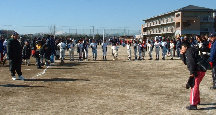 整列した選手たちの向こうに富士山がくっきりと・・・富士見ですから