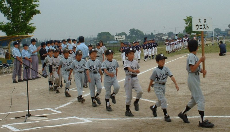 [戦況]富士見ファイヤーズは優勝候補の一角と見ていた。前の試合でコールド勝ちしたフェニックスのコーチにファイヤーズはどうですか?と聞いたら、「強いよ。どんどん強くなっている」との話。やっぱりと納得し、とにかく守って守って、耐えに耐えて、1チャンスを物にしなければ勝ち目は無いと考えて臨んだ試合、5年生が10人いる、体の大きさがまるで違う。大井ウエストは投手が3年生、捕手、2塁、ライトが4年生、5年生は1、3塁とショート、レフト、センターの5名という先発だった。前田は3年生ながら制球が良く、ふじみ野市4年生大会でも上福岡パワーズと大接戦の末2-1で勝ったときのヒーロー、スタミナもあり100球投げても大丈夫。それほど大量点を取られるタイプではない。1回先頭打者をショートゴロでアウトにし、2番、3番打者はショートライナー、なんとすべてショートへの打球、ウエストのショートはキャプテン青木一也、ヒット性の頭上のライナーをこれ以上無いタイミングでジャンプ一番つかみ取り、ファイヤーズにしてみればヒットを損した。たったの8球で三者凡退に抑えた前田、コントロールが良いので相手も打ちに来る。守りの鍛えられたウエストだから打たせればアウトが取れる。連打などそうそうあるものではない。好打者でも3回に2回はアウトにできる。この投手は奪三振の多い投手なのだが、この日は打たせてとるピッチング、バックが強力だからそれができる。1回裏2死から青木が四球で出て盗塁、ここで4番上條、打ってくれと祈るが1塁ゴロ、チャンスで4番が打たなければ・・・。2回表4番打者がショートフライ、どんどんショートに打たせろとベンチから声が飛ぶ。2死からセカンド横を抜かれライト横のヒット、この後2、3塁とされたが見逃し三振を奪って0点に抑えた。2回裏ウエストは5番パワーヒッターの飯田がガツンと打ったがショートライナー、4割打者名取は投ゴロ、湊はファウルで粘ったが強烈なファウルがウエストベンチ直撃、あろうことか投手の前田に当ててしまった。9球目ショートフライ。3回表1死後1番打者に還りセンターへヒットされた。盗塁はぎりぎりセーフ、小西捕手は肩が良いが、投手がある程度クイックで投げないと盗塁阻止は難しい。ここで手堅くバントで送られた。2死になっても送るということはそれだけクリーンアップの打撃が信頼できるということだ。しかし4番の左打者が強烈に引っ張ったもののウエストの1塁手はどこを守ってもうまい上條だ。ガッチリ捕って自ら1塁を踏んだ。これは試合前に考えたとおりの展開、良く守っている、こうなると先取点が欲しい。遠藤はファウルで粘り、これまた強烈なファウルがウエストベンチ直撃、今度は上條に当たった。その上テンション上がり過ぎか、鼻血まで出たが最後はナント、見逃し三振。富士見クラブの主将を務めるファイヤーズ西山主将の投球は打者によると手元で伸びてくるらしい。容易には点が取れない印象。しかしチャンスは思わぬ形でやってきた。1番に繋げる意味で置いている好打者9番西沢は四球で出て2盗、3盗、1番小西も連続四球から2盗、1死2、3塁のチャンスがやってきた。0-2からどうしてもストライクが取りたい場面、ここで前田自らを楽にするスクイズだ、ところがランナー目に入ったか西山投手1バウンド投球で前田のバットに当たらない、キャッチャーがファイヤーズベンチ側に弾く、西沢俊足飛ばしてホームイン、そしてナント!小西が2塁から思い切りよく走ってホームイン、これがこの選手のセンスが良いところ、2ランパスボールなんて記憶に無い。ところでこの走塁には裏があったらしい。チャンスを迎えて3塁コーチャーを湊に代えた。スコアラーは監督の腹にサードが隠れて見えなかったが、コーチャーは手をグルグル回して小西に突っ込ませたそうだ。好走塁の陰に名コーチャー有り。と書きなさいとコーチャーの母から圧力を受けたので追記した。走者が居なくなって前田打ち損じピッチャーフライで2アウト。「2アウトから1点取れ」と石河助監督の檄が飛ぶ。青木の打球はショートへ強い当たり、1塁送球が悪くエラーで生きた。上條はファーストゴロ、これまたエラー、これを見て青木は2塁、3塁と回り一挙ホームイン、この走塁も素晴らしかった。この間に上條は2塁へ、サードゴロ飯田もエラーで生きて、盗塁して2死2、3塁、名取の打席でパスボールがあり、ウエスト1の俊足上條がホームイン。押せ押せウエスト、名取は打ったがショートライナーでチェンジ、ノーヒットで4点は出来過ぎ。4回表もランナーは出したが0点に抑え、4回裏2死から西沢がサード横を破ってレフト線ヒット、しかし投手の牽制に引っ掛かりタッチアウト、まだ経験不足だな。5回表簡単に2死をとった前田投手2番打者に粘られて四球を出した。ランナーが気になって牽制するが結局走られた。これまた小西が良い2塁送球をしたが間一髪セーフ。3番打者にも四球を与え、ダブルスチールを