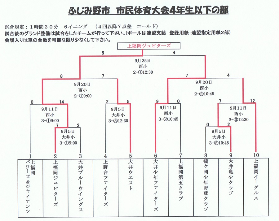 ■ふじみ野市4年生大会 対戦山組み表は→コチラをご覧下さい