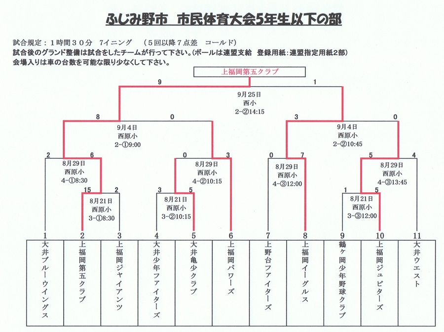 ■ふじみ野市5年生大会 対戦山組み表は→コチラをご覧下さい