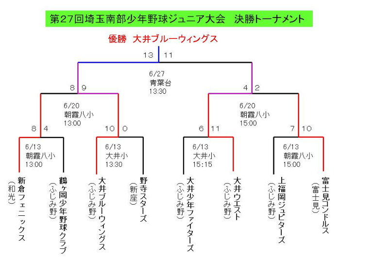 | 上福岡ジュピターズ | 5 | 2 | 0 | 1 | × | 8 |