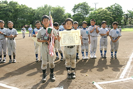 閉会式では吉田が敢闘賞、内藤が今後が期待できるで賞?みたいなものを頂いた。ウエストは1番から6番までが期待通りに打ちまくり、チャンスに強い柿沼もタイムリーヒットを打った。杉浦は1回に60球も投げながら、終わってみれば109球、2回以降はイニング平均12球のナイスピッチング、あの魔の1回は何だったのか?