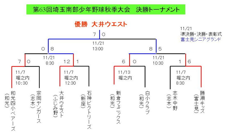 ■第63回埼玉南部秋季大会(志木市主管) −−→大会の組合せ、結果は埼玉南部少年野球連盟のホームページ(大杉さんご苦労様です)
