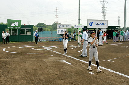 | 選手入場 | ふじみ野市のプラカードを持つ竹内彩夏選手(上野台ファイターズ) |