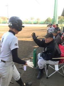 監督のアドバイスで本塁打、ハイタッチ |