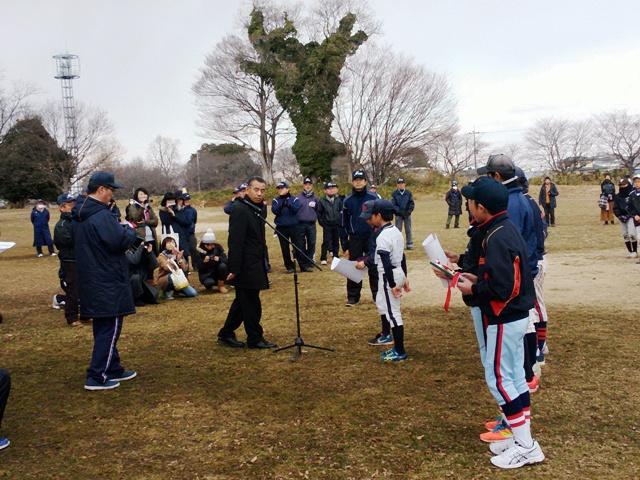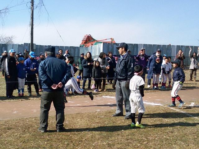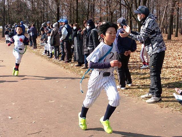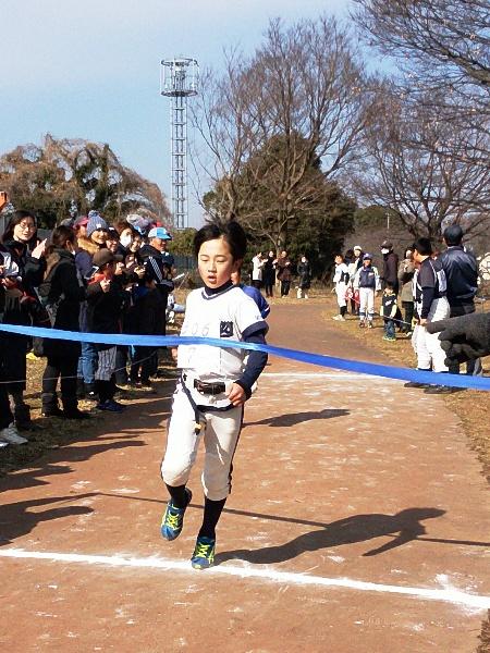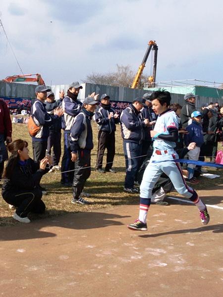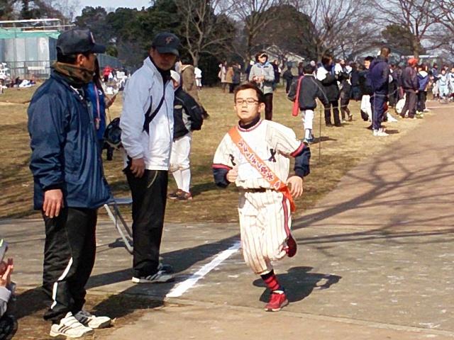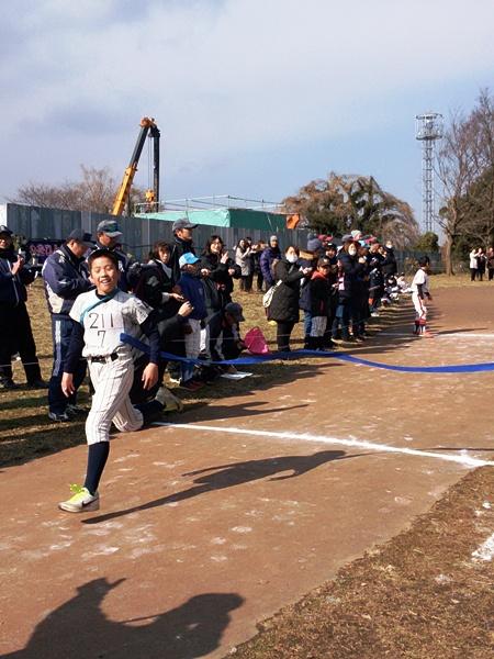![]() トップでゴールイン!鶴ヶ岡少年野球クラブ;海老本大翔主将 |