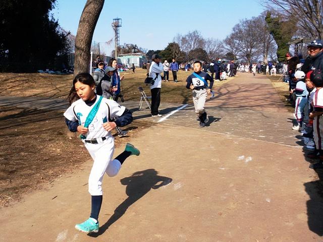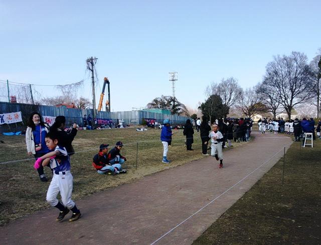| 前回、ついに勝瀬キッズの1部連続優勝が4で途切れました。第23回から会場が富士見市第二運動公園周回コースからびん沼自然公園に変り、コース全長がやや縮まって、勝瀬キッズが36分54秒で2位の富士見エンゼルスに57秒差をつけてブッチギリ優勝して勝瀬キッズ黄金時代が始まりました。この年の3位は上福岡JFGの前身、ジュピターズです。第24回は曇空の下35分38秒で2位富士見エンゼルスに1分10秒差、寒さをものともしない勝瀬キッズ圧巻の走りは感動的でした。第25回は気温3℃、寒風吹きすさぶ中なので36分47秒と記録は伸びませんでしたが、それでも2位の大井少年ファイターズAに1分1秒差の勝瀬キッズ圧勝でした。暖かかった第26回は37分4秒で優勝したものの、猛追して1秒届かなかった上福岡JFGに追い詰められ、その状況から勝瀬キッズ黄金時代の終焉が予感されました。昨年第27回は第1走者のスタート位置前倒しにより、走る距離が長くなったので記録の比較はできませんが、上福岡JFGが晴れて37分30秒で優勝し、勝瀬キッズは入賞できませんでした。そして今回第28回は例年より2時間遅れのスタートで38分1秒、例年に比べればやや遅いタイムですが、ついに鶴ヶ岡少年野球クラブが悲願の初優勝を果たしました。 |