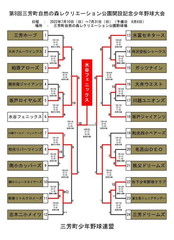 8月6日(土)10時から決勝・・・水谷フェニックス10−1水富セネタース