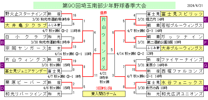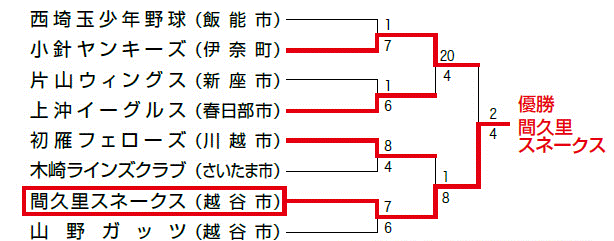 ● 第90回埼玉南部春季大会は強打の片山ウィングス(新座市)が優勝、準優勝:ガッツナイン(朝霞市)、第三位:宗岡ヤンガーズ(志木市)、水谷フェニックス
