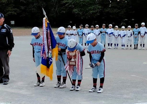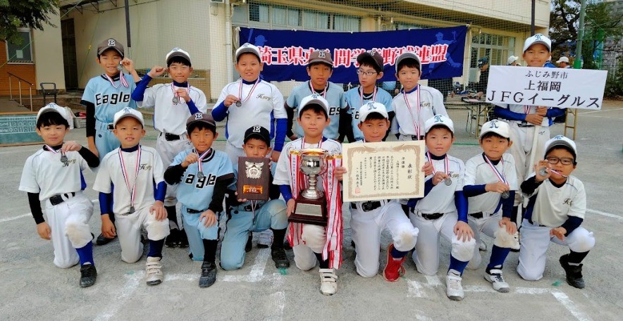 【戦況】決勝戦にふさわしい白熱した好ゲームでした。柏木会長が閉会式で述べたように、「両チームの捕手が素晴らしく、上福岡JFGイーグルスは混合チームだけど守備も良かった、特にサード、富士見ジュニアサンデーのエースは球数制限まで良く投げたね、JFGイーグルスの走塁がチョット?という点はあったが、ジュニアサンデーは6回表の1点で決めたネ」という講評がこの試合のポイントでした。