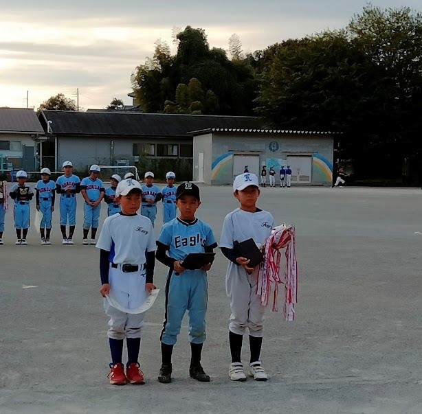 ジュニアサンデーは4安打3四球1死球で計8出塁5得点2残塁1塁上死、JFGイーグルスは3安打2四球3エラー出塁で計8出塁2得点4残塁2塁上死、すなわち同じ出塁数ながらチャンスを生かせなかったJFGイーグルス、エラーでランナーを出しながらも肝心なところで守り切ったジュニアサンデー、3回裏の流れを断ち切る田中捕手のプレー、6回表ダメ押しの梶選手のタイムリー二塁打、4年生の活躍でジュニアサンデーの勝利、JFGイーグルスは堅い守りながらここぞで1本出なかった、互角の戦いは最後タラ、レバで終わるもの、見事な戦い、両チームに拍手です、パチパチ(文責:澤藤隆一)